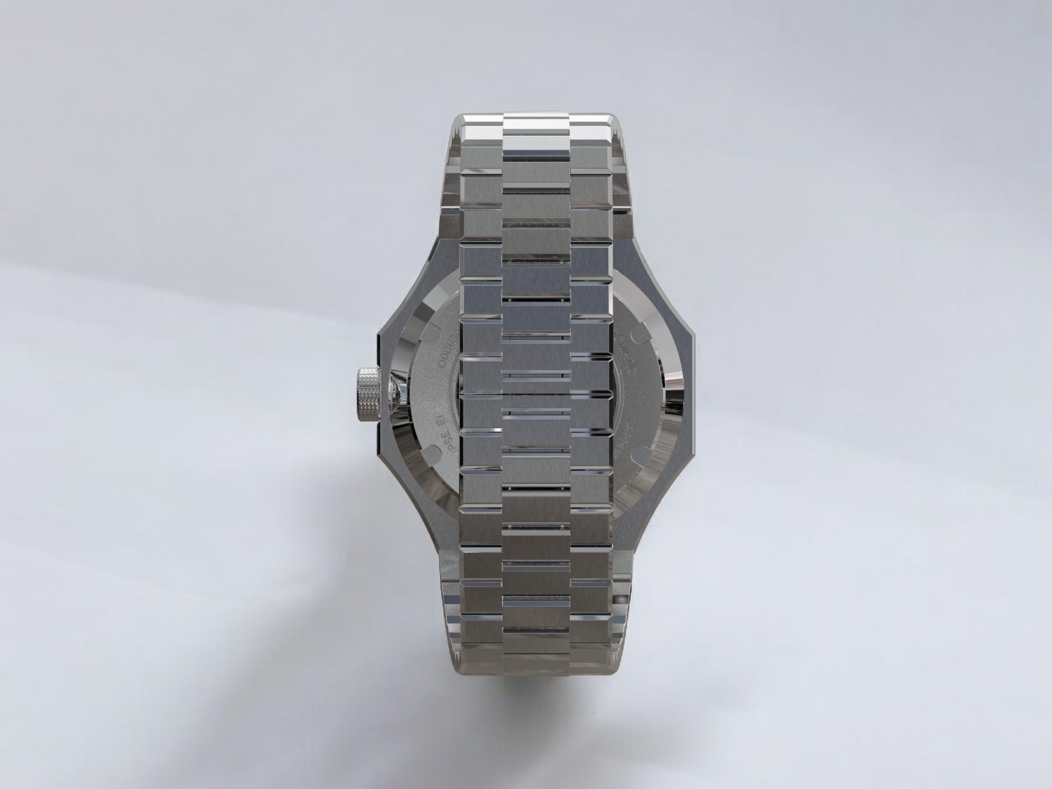 - Integrated 26 to 18mm tapered bracelet, 3mm thick