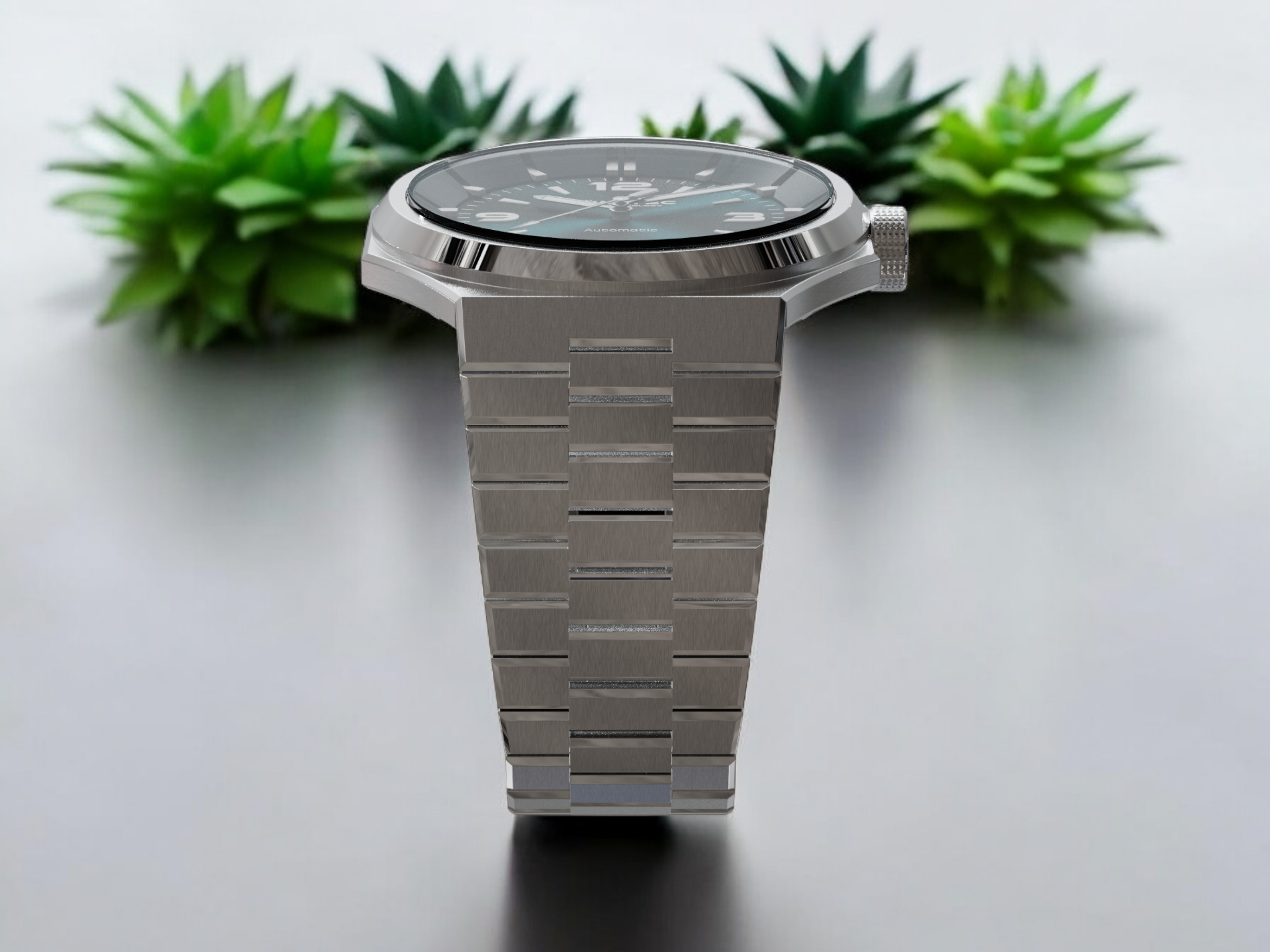 - Integrated 26 to 18mm tapered bracelet, 3mm thick